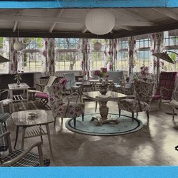 BORGHOLM. Guesthouse Paradiset, common room, hand-colored photo 1950s