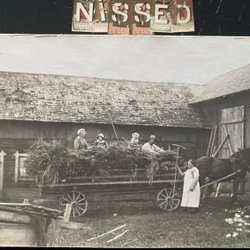 Genuine photographic postcards Horse and hay load with children on the cart
