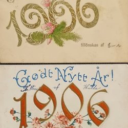2 pcs 1906 Happy New Year With flowers and gold text