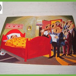 Night drumming 2 lovely Belgian cartoon humor cards probably 1950s