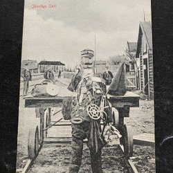 Laxå Railway Station Loaded timber wagon many soldiers on the platform 1902