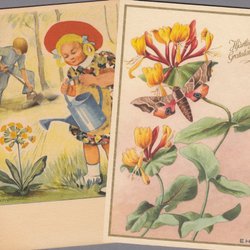2 older greeting cards. Kerstin Frykstrand (Sagokonst) + E.H. (Axel E)