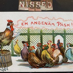 Happy Easter rooster speaks for hens signed Tycko Ödberg
