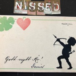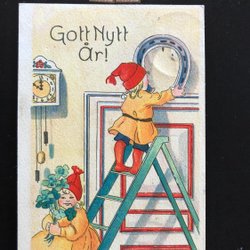 Freed Unwritten Christmas card Small card Tomte m almanac clock and 4-leaf clover KV 10