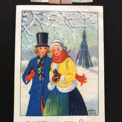 BK Klefbäck Christmas card Small card Fine lady with muff out in the evening pg 1953 KV7 8*