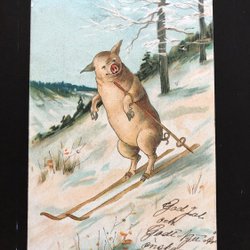 Skiing pig signed Max Hänel