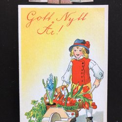 Sundius-Dahlström New Year Card Småkort Kulla m kurbitsbukett pg 1920 KV 7 8*