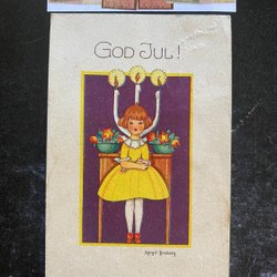Small postcard. Girl in front of light signed Margit Broberg