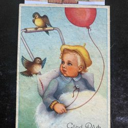 Small postcard .LC Lars Carlsson Boy in pram with balloons