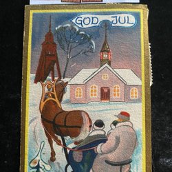 Small postcard Häst och släde tlll julottan signed Hagdahl