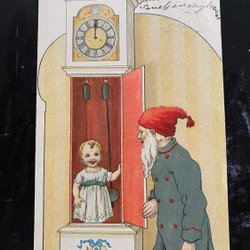 Santa opens clock with girl signed Lisa Fröman