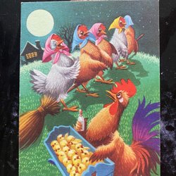 Small postcard LC Lars Carlsson Rooster with baby bottle