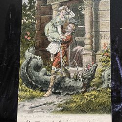 Romance in the Alps 2 charmingly drawn color cards signed MAILICK 1903