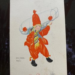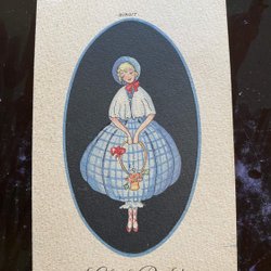 Small postcard Lady with flower basket signed BIRGIT