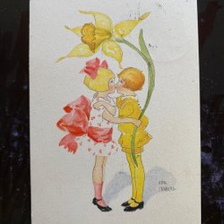 Small postcard Easter kiss under daffodil signed Aina Stenberg