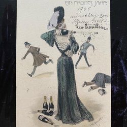 Beautiful New Year's card ladies and men signed Theodor Zasche