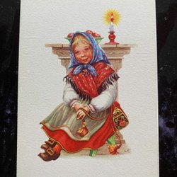 Small postcard LC Lars Carlsson girl with Christmas atmosphere