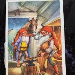 Small postcard LC Lars Carlsson Elves forge horseshoes