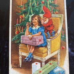 Small postcard Santa whispers in girl's ear signed Curt Nyström