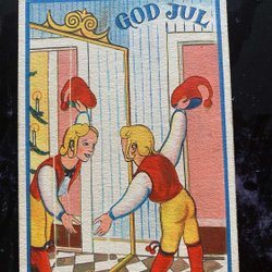 Small postcard boy reflects himself signed Hagdahl