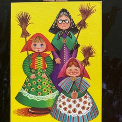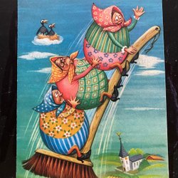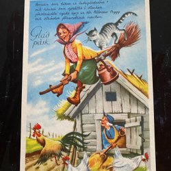 Small postcard Lars Carlsson Fingal Easter gummies with brooms