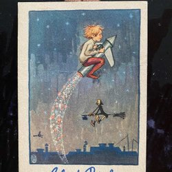 Santa swings on the moon, Curt Nyström Christmas card 11x7cm