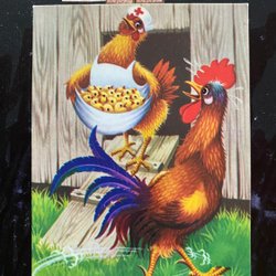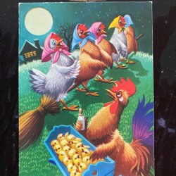 Small postcard Lars Carlsson Hens are fighting