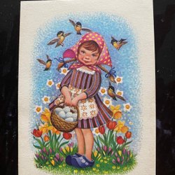 Card Happy Easter Girl Stina Broome stamp GÖTA 1948 old format