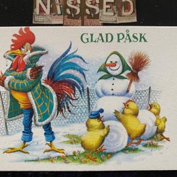 Small postcard Lars Carlsson Fingal Easter bunny and unusual snowman