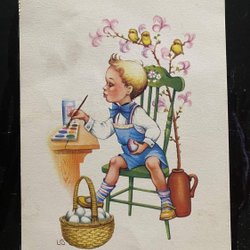 Small postcard Lars Carlsson Boy paints Easter eggs