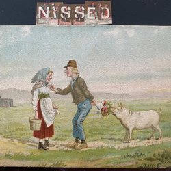 Thorwald Rasmussen Tr-n Cardboard card The pig eats gift flowers