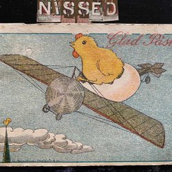 Signed postcard S. Sundius Dahlström Chicken drives an airplane