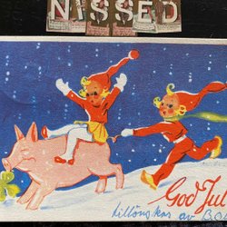 Small postcard 2 Santas and a pig