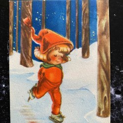 EST Christmas card Small card Girl with doll and phone in forest pg 1930 KV7 8