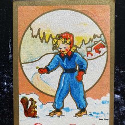 Small postcard girl and Squirrel signed Brit Cege Rare