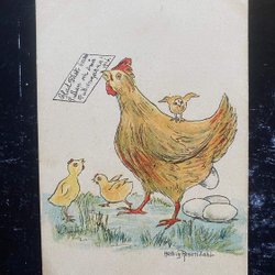 Hen with letter signed Hedvig Rosendahl