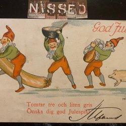 Card Santas pigs LC Carlsson