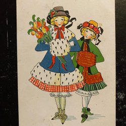 Christmas card older Children gold frame BRITA NYSTRÖM small card