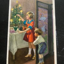 Merry Christmas Boy and girl with candlesticks signed JENNY NYSTRÖM sent 1915 surface damage back