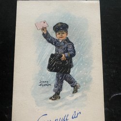 Jenny Nyström .Young postman with mail