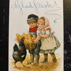 Jenny Nyström Boy and girl with chicken basket