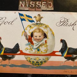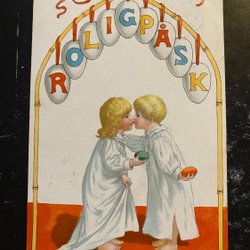 Jenny Nyström Boy and girl kiss with painted eggs