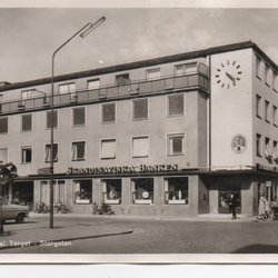 Nybro - Corner Torget - Storgatan, bank ~1957