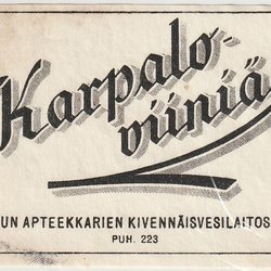 OLD WINE LABEL - KARPALO VIINIÄ TURUN APT. FINLAND (K13-S5)