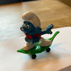 Vintage Smurf on leaf skateboard