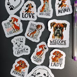 - Musikrelaterade klistermärken, allt från klassisk rock till modern pop.
