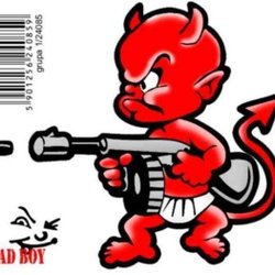 Pissande kille med djävulen som skugga. Dekal/sticker Silvertryck