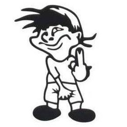 Liten kille visar fingret och tar sig i..... Dekal/sticker Svart tryck