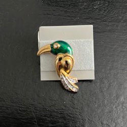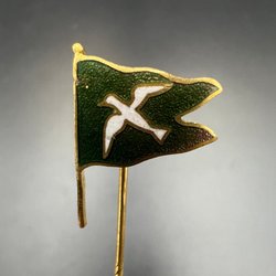 Vintage green pin with bird, Club flag pin stick