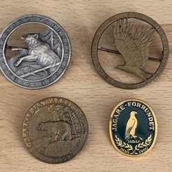 Pin badges, hunting related, 4 pcs, Dalarna Stockholm